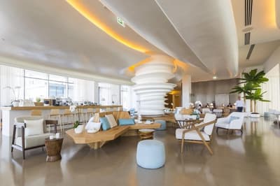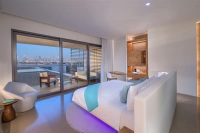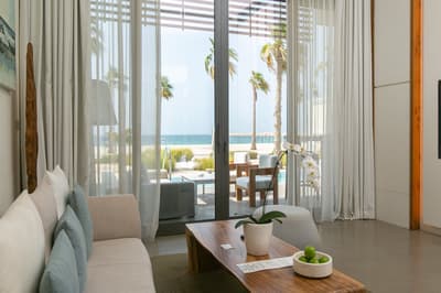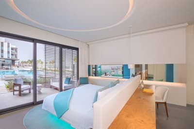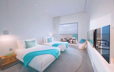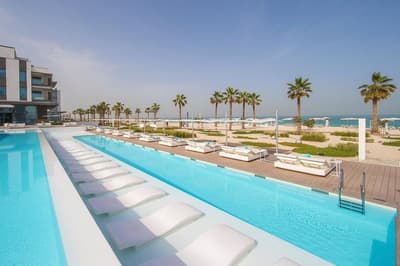 Envie de vivre « votre meilleure vie » ? Ne cherchez pas plus loin, elle vous attend déjà au Nikki Beach Resort & Spa Dubai ! Vous n’aurez même pas l’impression d’être à Dubaï, mais plutôt sur une île déserte luxueuse avec tous ces transats rien que pour vous. Eh oui, le Nikki Beach est bien plus petit que les autres resorts pour une ambiance intimiste, qui fait du bien dans une ville comme ça. Attention, la plage est le gros point fort du resort, il vous sera bien difficile de la quitter. On n’a pas envie d’utiliser le mot « paradisiaque » pour éviter les clichés, mais en voyant tous ces palmiers, quand même un peu… Encore mieux pour en profiter, les chambres avec vue sur la mer. Les lits sont orientés face à ce mélange de teintes de bleu. Le réveil se fait naturellement ! Autre gros point fort : la séparation entre le beach resort, super apaisant et accueillant pour les enfants, et le beach club, super fun pour boire des cocktails par dizaines. Deux salles, deux ambiances, sans que l’une empiète sur l’autre. Enfin, un dernier souvenir qui vous marquera : on ne parle même pas de la piscine à débordement, mais du cinéma en plein air, les pieds dans le sable. On a connu pire comme sensation, non ? Votre meilleure vie, oui, et surtout vos meilleures photos !