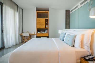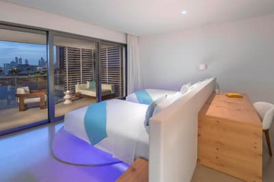 Une piscine à débordement qui donne sur la plage, une terrasse où chiller avec vue sur les buildings et surtout un cinéma en plein air les pieds dans le sable : ça ne serait pas un hôtel de rêve, ça ?