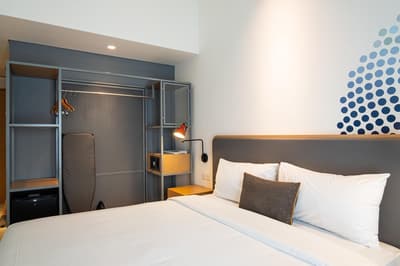 Elle a tout le nécessaire pour un séjour des plus agréables et confortables. Cette belle chambre profite d’une vue sur la ville vibrante. Elle accommode un grand lit et dispose de beaux fauteuils dans le coin salon. Salle de bain avec douche à effet de pluie.