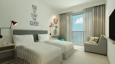 Rien n’arrête le groupe Rove. Pour cet énième hôtel à Dubaï, il s’implante en bord de mer. Avec toujours la même philosophie alliant simplicité et fun !