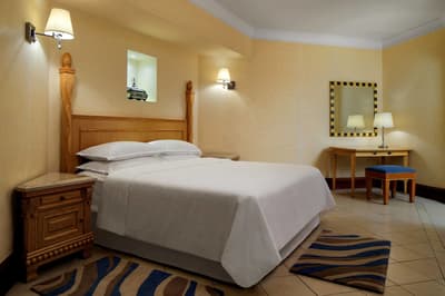 Comment vous résumer un hôtel Sheraton en si peu de lignes ? Peut-être qu'avec des chiffres, ça devrait bien plus vous parler. 5 étoiles et 10 000 m² de jardins… Ça y est, on a toute votre attention ? Parfait ! Ce n’est pas car les chambres sont plutôt vieillissantes (rien ne sert de nier des faits) que le resort ne vaut pas le coup, bien au contraire. Si vous souhaitez une expérience cinq étoiles garantie avec spa (sauna, hammam et massages !), c’est définitivement le lieu. Le must est l’accès à la plage privée… Allongez-vous sur un transat, on s’occupe du reste ! Envie d’un cocktail ? Il est déjà sur votre table. Envie d’un petit snack à grignoter avant de repartir ? Il arrive. Mais que serait un beach resort sans son incontournable piscine, endroit parfait pour chiller les doigts de pied en éventail ? Puis, une fois que le soleil se couche, vous pouvez diverger vers le Bliss Lounge en plein air. Dépaysement garanti, les cheveux au vent ! En tout cas, si vous trouvez encore de quoi vous ennuyer, ce ne sont pas les activités qui manquent. Du squash, du foot, de la plongée sous-marine, du kayak : en fait, il va falloir rallonger votre séjour pour avoir le temps de tout essayer.