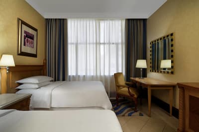 Située aux étages supérieures, elle offre l'accès au salon Club et profite d’une vue imprenable sur la place et la promenade JBR que vous pourrez contempler du confort de votre chambre. À noter qu’elle dispose de deux lits jumeaux pour plus de confortabilité.