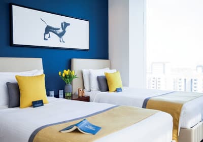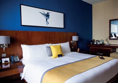 Préparez vos esprits et vos gambettes tremblantes, le voco Dubai est situé dans une tour de plus de cinquante étages ! Eh ouais, c’est Dubaï, si vous vous attendiez à tout autre chose, vous foncez droit dans le mur. Allez, au lieu de voir le verre à moitié vide et de penser directement à vos tendances à avoir le vertige (comme pendant votre dernier séjour au ski), voyez-le plutôt à moitié plein ! Qui dit cinquante étages veut également dire cinquante étages de vues de plus en plus ahurissantes... Clou du spectacle : le bar du 51e, qui offre, évidemment, la plus belle vue du building. 3, 2, 1, dégainez l’appareil photo ! Sinon, vous pourrez également vous contenter de la vue depuis votre chambre, quasiment aussi belle. Et puis la décoration est très soignée, entre le bleu royal et le jaune poussin, deux couleurs qui se marient, étonnamment, à la perfection. Vous verrez, elles vous donneront le petit boost d’énergie nécessaire à vous sortir du lit le matin ! En plus de ça, des petits tableaux de colibris, teckels et petits chiens sont présents pour vous apporter une compagnie supplémentaire. Sans oublier le service absolument exceptionnel… Et voilà, un hôtel cinq étoiles en bonne et due forme !