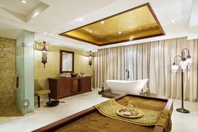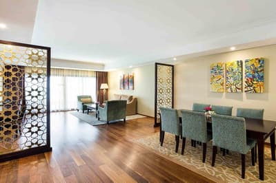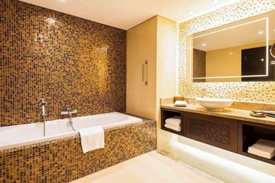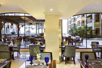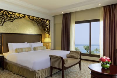 Le Marjan Island Resort & Spa doit son nom à l'île de Marjan, qui est en réalité faite de quatre îles en forme de corail. Inspirant non ? Et la plage l'est tout autant ! Le bâtiment lui-même hésite entre le palais et le building et s'articule autour de la piscine principale. Les palmiers sont évidemment de la partie, sans quoi la carte postale ne serait pas complète. De là à tomber sous le charme direct', pas forcément. Mais le resort a de sérieux arguments quand on regarde la variété des sports nautiques proposés ! Et puis est-ce qu'on ne vient pas au bord de mer pour profiter de l'extérieur ? Sinon, au cœur de la structure, une rampe grimpe les étages en faisant des cercles quasi hypnotiques. Ce puits de lumière est néanmoins très agréable. Dans les couloirs d'accès aux chambres, des éléments décoratifs arabisants vous mettront dans l'ambiance. Le Spa est le graal en la matière, avec une belle mise en scène et quelques soins locaux. Notons surtout ce Waves Bed sur lequel du sable chaud ondule... Une sensation incroyable ! Quant aux enfants, ils seront ravis car leurs jeux ne se limiteront pas au château-drakkar posé dans le jardin ou aux sempiternels toboggans. Ici, les jeux sont actuels et interactifs ! Plus ce café de pirates où ils prendront leur milkshake sur des tonneaux. Ah, un dernier détail qui a son importance (pour vous), l'hôtel ne sert pas d'alcool.