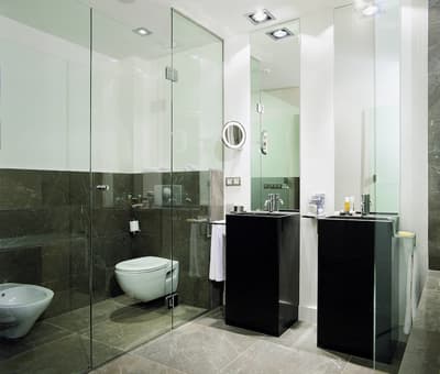 Avec son architecture incroyable, elle profite d’un cadre relaxant et luxueux. Les grands panneaux vitrés procurent une sensation d'espace et d'ouverture. Petit coin salon avec de beaux fauteuils. Salle de bain chic avec baignoire et douche à effet de pluie.