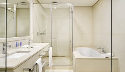 Spacieuse, elle profite d’une terrasse qui donne sur les jardins subtropicaux ou sur la Plaza animée de l'hôtel, scène centrale de sa scène gastronomique animée et de sa vie nocturne opulente. Vous pourrez également contempler la vue imprenable sur la place ou les jardin en toute intimité.