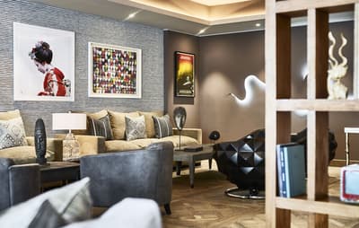 La décoration est dans un style chic décontracté et de luxe discret et fait appel à des matériaux naturels, des textures exclusives et d’œuvres d'art personnalisées d'Andrew Martin. La chambre est dotée d’un lit king size et pour vos soirées festives un salon coloré et ludique avec de hauts plafonds et un coin bar. La salle de bains est équipée d’une douche à effet pluie. Le tout dans une ambiance relaxante et cosy!