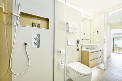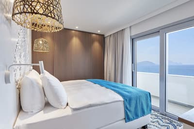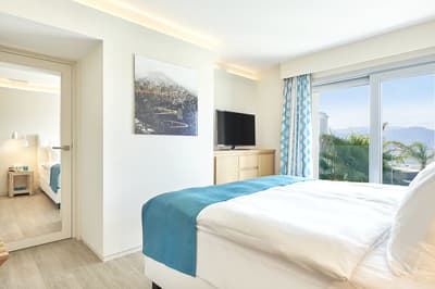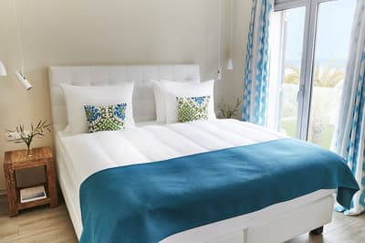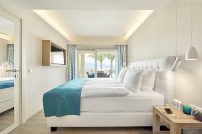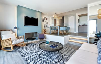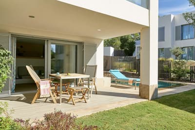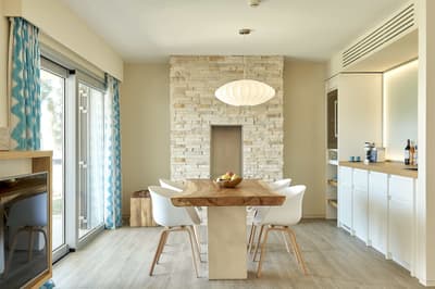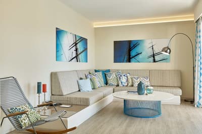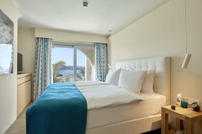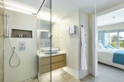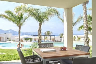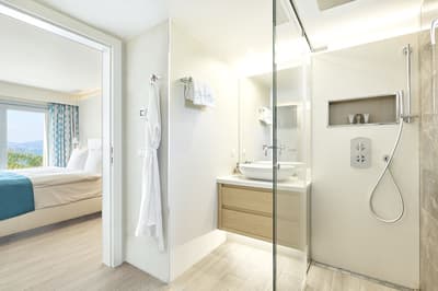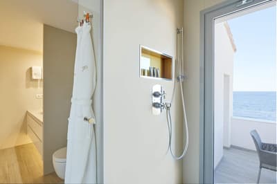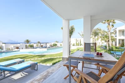 Très agréable, elle offre une vue merveilleuse sur le complexe. Son balcon aménagé de belles chaises profite d’un cadre reposant et serein. Coin salon meublé de banquettes et d’une petite table. Salle de bain chic avec douche.
