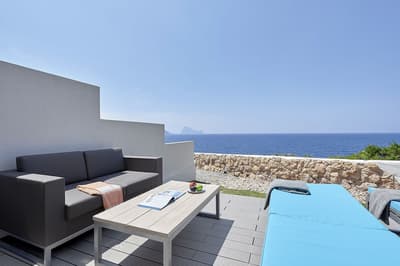 Un hôtel aux couleurs d’Ibiza, où l’on se plaît à ne rien faire du tout ! Son plus bel atout : le panorama sur la mer Méditerranée et l’île d’Es Vedrà. Difficile de trouver un meilleur spot pour le coucher du soleil.