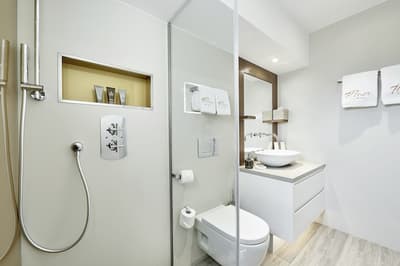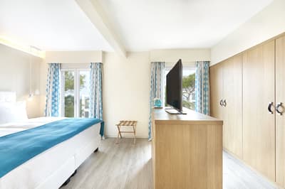 Climatisation, télévision satellite, WiFi, minibar, sèche-cheveux, coffre-fort, nécessaire thé et café.