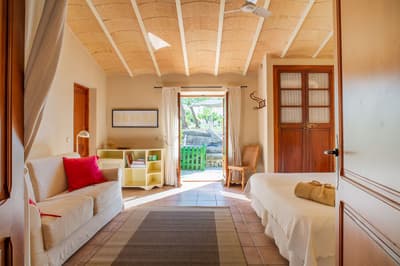 Envie de chiller en pleine campagne, loin du bruit et de l’agitation des villes ? Sa Rota d'en Palerm est peut-être la solution qu’il vous faut. En vrai, ce petit hôtel d’agrotourisme est un véritable cocon en plein cœur de l’île de Majorque. Ici, pas de plages bondées ni de bus de touristes. Juste le calme, la campagne et une propriété trop stylée avec ses vieilles pierres, ses chambres cosy et sa piscine de rêve ! Dans un domaine du XVIIIe siècle au milieu d'une pinède de 30 hectares, une famille a eu cette idée folle de créer une oasis de tranquillité, dans un lieu authentique qui raconte l’histoire de l’agriculture et de la viticulture à Majorque. Retour à l'essentiel, cuisine bio, randonnée, vélo, tous les ingrédients du séjour éco-responsable sont réunis pour vous faire vivre une expérience à mille lieues des grands complexes touristiques de l’île. Pour une nuit, un week-end ou une semaine, Sa Rota d'en Palerm offre aux voyageurs en manque de nature une escale idéale pour se ressourcer et découvrir la culture locale.