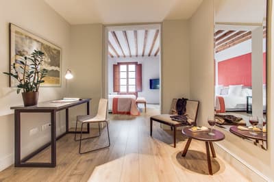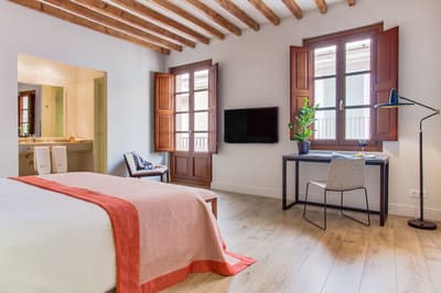 Une petite perle à Palma de Majorque ! Le Boutique Hotel Calatrava se situe aux portes du Casco Antiguo et offre de splendides vues sur la mer. Oui, les deux, c’est possible ! On adore quand les hôtels misent sur une élégance sans chichi et ce bâtiment du 19e siècle, doté d’une décoration chaleureuse, n’échappe pas à la règle. Murs blancs, poutres au plafond, canapés cosy, meubles en bois foncés au charme d’antan, objets et tableaux contemporains, quelques plantes et fleurs ici et là… Tout est dosé à la perfection, juste avant l’excès. Les lecteurs de magazine déco apprécieront et craqueront pour le buffet aux innombrables tiroirs du salon. C’est chaleureux, convivial, au même niveau que le service d’ailleurs. Si les chambres donnent sur les rues de la vieille ville, la plupart des suites offrent un panorama bleuté tellement incroyable. Quand on s’y plonge depuis le grand balcon d’époque, c’est encore mieux. Et pour ceux qui n’ont qu’un balcon à la française, d’époque aussi, ne paniquez pas. Chaque petit déjeuner pris au 5e étage est une excuse pour profiter du panorama. Pas de piscine ni de lounger : c’est un hôtel de ville chic, qui arrive à nous détendre malgré tout grâce à son calme et un petit peu aussi grâce à son spa.