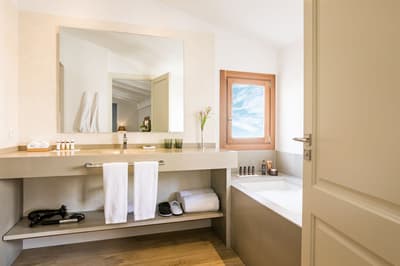 Cette belle suite procure espace et confort. De son balcon aménagé de belles chaises, elle profite d’une vue merveilleuse sur l’océan et la végétation. Le salon est meublé d’un canapé-lit et de fauteuils. Salle de bain chic avec baignoire et douche à effet de pluie.