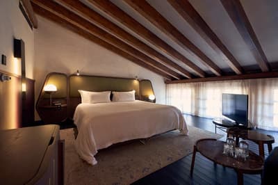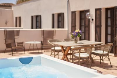 Les hauts plafonds de cette suite évoquent le style architectural des maisons majorquines du XVIe siècle et offrent une expérience unique de se réveiller dans une authentique œuvre d'art. Elle bénéficie d’un patio intérieur et d’une vue sur la rue ou sur le jardin avec terrasse. À noter qu’elle accueille les chiens.