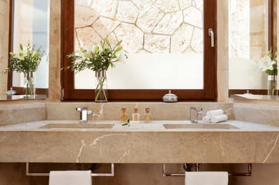 Elle bénéficie d’un style de décoration typique au cœur de la vie de Cap Rocat avec des plafonds voûtés et des sols en pierre indigène. La chambre dispose d’un lit king-size confortable (certains à baldaquin), d'un petit coin salon intérieur avec un canapé, un fauteuil, une table basse et un bureau. La salle de bains comprend une baignoire, une douche séparée et d’un double vasque. Le tout dans une atmosphère champêtre !
