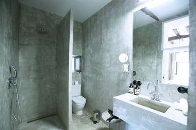 Très agréable, elle a tout le nécessaire pour un séjour confortable et relaxant. Petit patio dans l’entrée de la chambre. Salle de bain chic avec douche à effet de pluie.