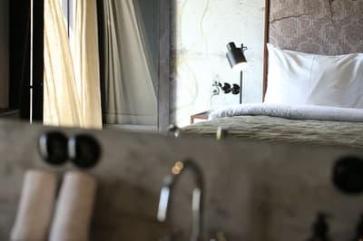 Le top ! Sa grande baignoire est installée au centre de la chambre et profite d’une vue époustouflante sur la végétation luxuriante et la colline au loin. Balcon pour apprécier l’air frais et le cadre relaxant. Salle de bain chic avec douche à effet de pluie.