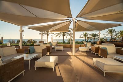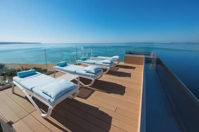 Impossible de faire plus pratique que cet hôtel ! Votre avion atterrit, vous récupérez vos bagages, vous les posez dans votre chambre et vous avez les doigts de pied en éventail sur la plage, ou au bord de la piscine, au choix. Tout ça, en moins d’une heure ! Sérieusement, l’Iberostar Selection Playa de Palma se trouve à même pas cinq minutes en voiture de l’aéroport. Pour la ville de Palma, c’est dix minutes grand max. L’idéal pour ne pas passer des heures dans les transports à l’aller et au retour, c’est rare… Avec ça, vous pourriez presque faire le trajet à pied. Mais encore mieux, une piste cyclable longe la côte jusqu’à la ville, que vous pourrez emprunter avec les vélos de l’hôtel. Si vous n’avez pas la foi, vous pouvez tout simplement rester sur la jolie promenade piétonne au bord de la plage, le coucher de soleil y est éblouissant. A l’image du reste de l’hôtel, pas vraiment réservé aux enfants : une zone adults only « Star Prestige », dédiée aux guests ayant pris l’option, vous réserve de très beaux moments. La terrasse en rooftop avec sa piscine à débordement est magnifique au-dessus de la mer... Les couleurs se confondent et vous en viendrez à vous demander où est-ce que vous êtes vraiment, entre ciel, mer et eau chlorée… Le plus dur, ce sera de rentrer chez vous !