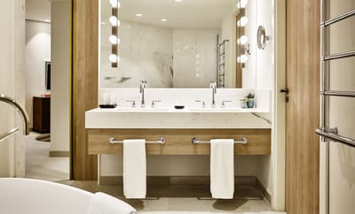 De son balcon aménagé de fauteuils confortables, elle profite d’une vue époustouflante sur l’océan. Elle a tout le nécessaire pour un séjour serein et relaxant. Elle peut accommoder un lit king ou des lits jumeaux et dispose d’un coin salon meublé de belles chaises. Salle de bain chic avec douche à effet de pluie.