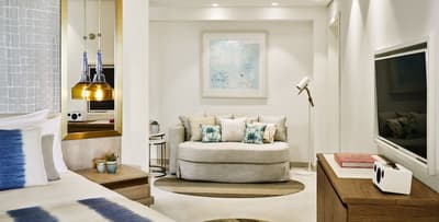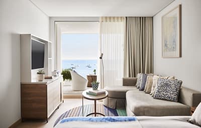 Le top ! En front de mer, son balcon profite d’une vue époustouflante sur l’océan. Son extérieur aménagé de fauteuils confortables est idéal pour apprécier le cadre reposant. Elle accueille un lit King et dispose d’un canapé dans son coin salon. Salle de bain chic avec douche à effet de pluie.