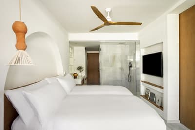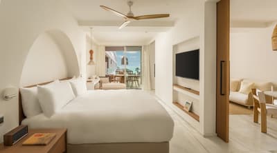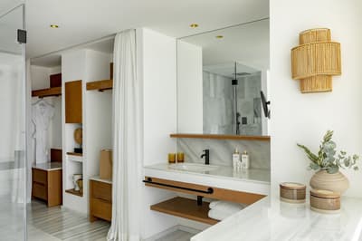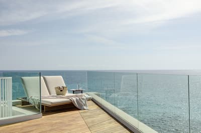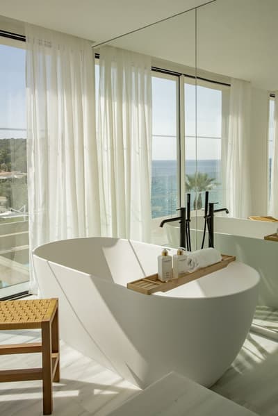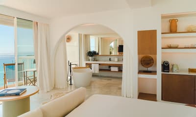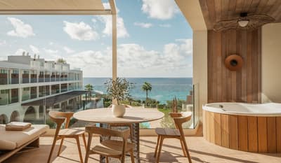 Minorque, ça vous dit ? Plus discrète que ses copines Ibiza et Majorque, l'île se fait de plus en plus désirer... Il faut dire que 30 ans de classement en tant que réserve de biosphère, ça fait rêver non ? Bienvenue à la Villa Le Blanc, un des derniers bijoux de Gran Melià Hotels & Resorts, qui appartient aussi au groupe emblématique Leading Hotels of the World. Au bout du sentier du Cami de Cavalls, face à la plage de Santo Tomàs, l'adresse embrasse la Méditerranée. Elle se fond dans un décor paradisiaque, fait d’eaux claires et de jardins exotiques, avec ses arches et ses murs blancs éclatants. Le premier 5 étoiles de l’île va vous en mettre plein la vue ! De ses hébergements à ses services, on n'y manque de rien. Ses trois restos mixent cuisine méditerranéenne et traditionnelle. Ses 159 chambres, à la décoration moderne et bohème, sont évidemment vue mer. Et côté activités, on switche entre la plage, la piscine, le spa et les excursions, qui nous font tomber chaque jour un peu plus amoureux de ce hot spot !