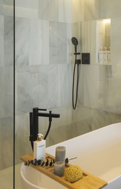 Agréable et confortable, elle a tout ce qu’il faut pour un séjour superbe. La terrasse est complètement aménagée pour apprécier la vue sur les rues animées. Elle accommode un grand lit ou des lits simples. Salle de bain avec douche et baignoire.