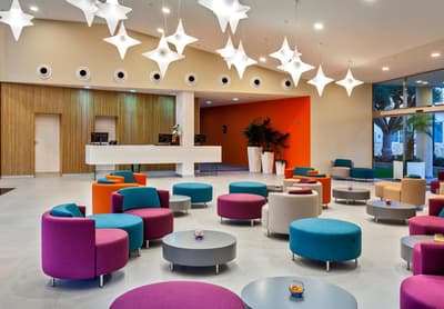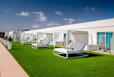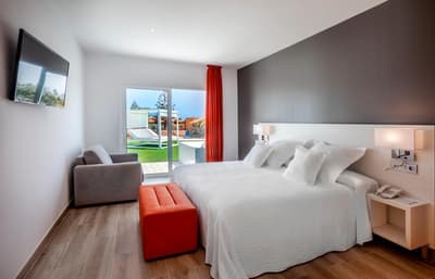 Envie de vacances à la fois en ville et à deux pas de la plage, dans un cadre de bleu, de blanc et de palmiers ? C’est au Barcelo Corralejo Sands qu’il faut poser les valises, du côté de la douce Fuerteventura ! Même si l’allure résolument moderne du bâtiment peut refroidir à l’arrivée, pas de panique : à l’intérieur, c’est chaleur humaine et parenthèse bien-être qui vous attendent ! On apprécie beaucoup ces bungalows blancs qui éclatent dans le bleu du ciel, avec l’ombre des palmiers qui caresse les murs. Et les deux piscines sont franchement sympas, au milieu de cette végétation très ordonnée. Avant de faire un plongeon, on prend le temps de s’installer dans sa chambre lumineuse, avec pourquoi pas un petit café sur sa terrasse. Certaines ont même leur propre baignoire balnéo dehors ! Entre un tour au sauna dans le centre wellness et sa piscine à jets, et une balade dans les rues caliente de Corralejo, on déguste un verre et on profite du all inclusive proposé en option. Bon à savoir : le buffet est ici de qualité ! Mais au fait, que serait un séjour aux Canaries sans passer par la playa ? On vous conseille de prendre la navette proposée par l’hôtel pour vous rendre à la grande plage des Dunes : située à 3 km, c'est l’une des plus belles de l’archipel ! Bref, un hôtel assez bien placé, pratique et agréable. Aussi bien en famille qu’en couple ! Très cool aussi pour les fans de sports nautiques et de surf avec les spots intéressants à proximité !