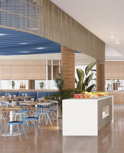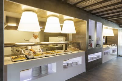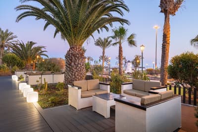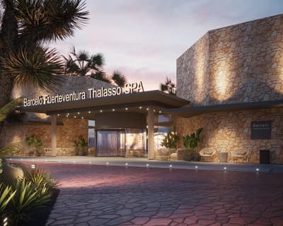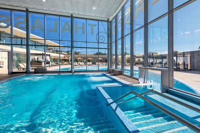 C’est parti pour les vacances ! Pour cela, il nous faut : une piscine lagon avec un joli petit pont, des palmiers en veux-tu, en voilà, un espace pirates, un minigolf, des zones de détente et surtout beaucoup, beaucoup de bains de soleil. C’est bon, le Barceló Fuerteventura Thalasso Spa remplit tous les critères ! Cet hôtel 4* borde le littoral de l’île de Fuerteventura, dans les Canaries. Plus précisément, il se trouve à deux pas de la Playa del Castillo. Une vaste plage, bien sympathique pour des vacances en famille. Si les parties communes de l’établissement sont un brin vieillottes, les jardins sont agréables et bien entretenus, et la thalasso nous ramène à l’instant présent avec son look flambant neuf et son circuit thermal de folie. Autres touches contemporaines qu’on adore : les petites terrasses privatives dotées d’un jacuzzi, hyper bien aménagées pour l’intimité et décorées de grands bacs à fleurs. Côté restauration, c’est varié, mais la qualité laisse à désirer… Heureusement, l’emplacement est top ! Du coup, les gourmets et surtout les gourmands n’auront qu’à explorer les environs. En deux temps trois mouvements, vous trouverez un restaurant de fruits de mer ou un chiringuito digne de ce nom.