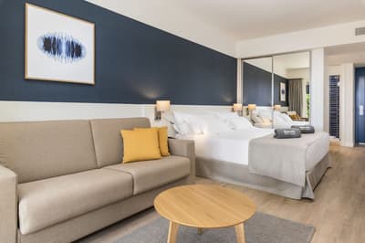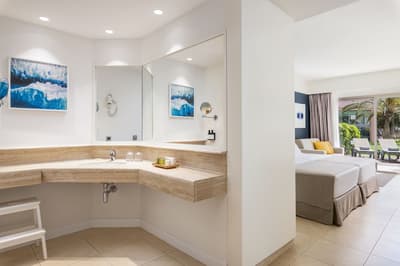 Cette belle chambre profite d’un cadre chic. La terrasse ou le balcon est aménagé de belles chaises pour apprécier la végétation du complexe et la vue. Elle peut accommoder 1 lit King ou 2 lits doubles et dispose d’un canapé-lit dans un coin de la chambre. Salle de bain avec douche à effet de pluie.