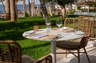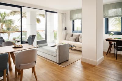 On vous emmène dans un endroit historique de Lanzarote, au Fariones, tout simplement le premier hôtel à avoir été construit sur l’île en 1967 ! Rassurez-vous tout n’y est pas figé dans les sixties. Cette icône a été entièrement refaite en 2020 et a rouvert en tant que resort 5 étoiles ! Cet élégant bâtiment blanc au cœur même du village de Puerto del Carmen s’élève au cœur d’une jungle tropicale. Dès le lobby, c’est l’esprit de luxe discret des palaces qui prime avec son personnel accueillant, évoluant entre des œuvres canariennes avant-gardistes. Mais il est temps d’évoquer l'atout majeur : sa piscine à débordement donnant sur une crique paradisiaque presque secrète. Les chambres sont meublées avec des pièces design de goût évoquant l’appartement d'un habitant de Lanzarote pur et dur. Plutôt géant par ses volumes (213 chambres et 4 restaurants tout de même), le Fariones est surtout pléthorique par les activités proposées. Topo de la journée parfaite : après un déjeuner au Kaori, restaurant design qui offre une nouvelle dimension ensoleillée la cuisine asiatique, on file ensuite au Centre Deportivo Fariones, complexe sportif où l’on peut nager ou opter pour du tennis ou du yoga. Enfin, le soir venu, on profite des couchers de soleil flamboyant des Canaries en sirotant un cocktail sur le toit terrasse. Si on vous dit que le tout sera agrémenté d’un concert de jazz et piano comme il y en a presque chaque soir, vous embarquez ?