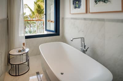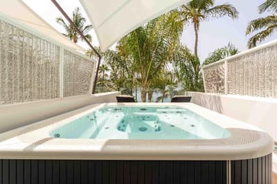 Le top ! D’une dimension généreuse, le balcon est meublé d’un jacuzzi et de beaux fauteuils. Cette belle suite accommode un des lits simples et dispose d’un canapé dans le coin salon. Salle de bain chic avec douche à effet de pluie.