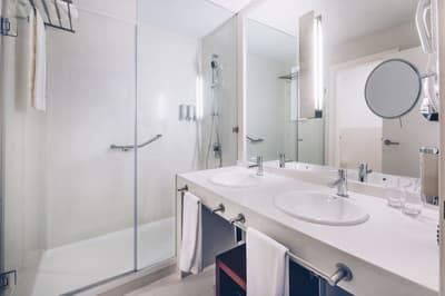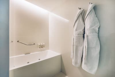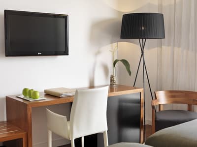Chambre sans plastique à usage unique, Wifi gratuit, Service de chambre, Téléviseur 32", Kit café et thé, Peignoir et chaussons, Minibar (payant), Climatisation, Coffre-fort, Téléphone, Sèche-cheveux.