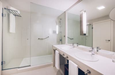 L’ensemble est dans un style de décoration élégante et moderne avec un beau parquet, un mobilier en bois clair et se complète dans une dominance de blanc. La chambre est dotée d’un lit king (2x2m), queen (1,50x2) ou twin et la salle de bains est équipée d’un double vasque, d’une douche ou d’une baignoire. Le tout dans une ambiance relaxante !