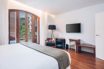 Cette chambre offre une vue époustouflante sur le jardin et convient parfaitement aux amoureux des espaces verts. Vous pourrez apprécier les vues sur les jardins de l’hôtel avec ses jolis palmiers qui accueillent une nouvelle journée depuis le balcon ou la fenêtre.