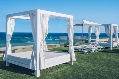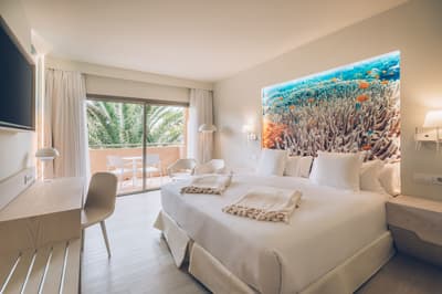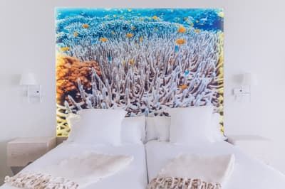 Vous allez vous sentir comme un poisson dans l’eau à l’Iberostar Selection Fuerteventura Palace ! Ça tombe bien, parce que vous serez en coloc avec plein d’autres bêtes à nageoires dans votre chambre ! Pas des vraies, rassurez-vous (quoique, ça aurait pu être sympa, des chambres avec un sol en verre au-dessus de la mer…) : ils sont aux murs ! C’est peut-être un peu too much, ces gigantesques photos illuminées, mais si jamais vous vous sentez seul, les poissons sont là. Peu bavards et à l’écoute, ces petits êtres sont d’excellente compagnie… c’est quelque chose dont on ne parle pas assez ! Et ce bleu turquoise présent sur les murs ne vous quittera pas une seule seconde pendant tout votre séjour. Des kilomètres de sable jusqu'à la piscine surélevée avec la meilleure vue et à l'open bar de la zone exclusive Star Prestige (comment s’en lasser ? Rien que le nom en dit beaucoup…), vous allez en avoir plein les yeux, c’est sûr ! De toute façon, c’est un hôtel Selection du groupe Iberostar, donc il est fidèle à sa réputation : c’est-à-dire excellent de A à Z. Même le restaurant-buffet est succulent ! Tout ça dans un environnement naturel, préservé et plus calme que le reste de l’île. Ça va être difficile de trouver mieux !