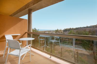 Installée au dernier étage du complexe, elle profite d’une vue époustouflante sur l’Océan Atlantique. Son balcon est aménagé de belles chaises et d’une petite table pour apprécier le cadre relaxant. Petit coin salon avec des fauteuils confortables. Salle de bain chic avec douche.