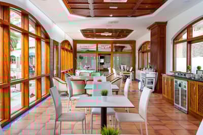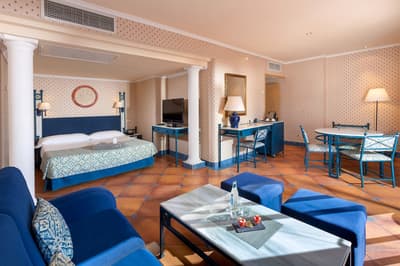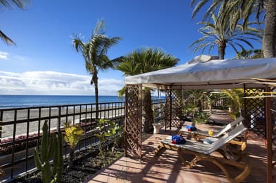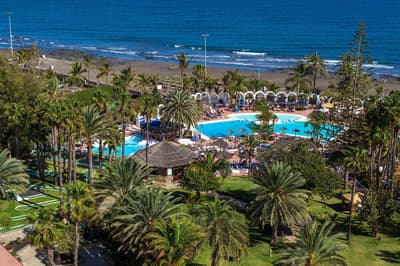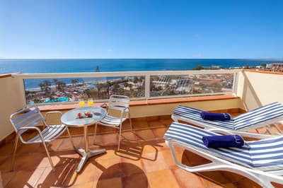 Avouez que l’emplacement de votre hôtel n’est pas mal du tout ! A 20 minutes à peine de l’aéroport de Grande Canarie, mais surtout avec un accès à la très chouette plage San Agustín. D’accord, le bâtiment de 7 étages n’est pas des plus sexy. Il faut bien caser les 279 chambres ! Vous avez opté pour du tout inclusive, mais version The Level, justement, pour avoir un bon niveau de prestations. Ne grimacez par devant la déco des chambres. Sauf si pour vous, le côté revival 70 est un must d’avant-gardisme ! Et puis, les boissons seront comprises, cocktails inclus ! Allez plutôt regarder les installations. Vous ne vous attarderez pas dans le lobby, vaste mais un peu vieillot. De toute façon vous êtes là pour profiter des extérieurs. D’abord les 18 000 m2 de jardins qui s’étirent jusqu’à l’océan : des palmiers, des cactus, de belles pelouses qui tranchent avec ce sable noir volcanique. Trois piscines dont une chauffée et une pataugeoire pour les enfants. Ne vous rappellent-elles pas un autre endroit ? Mais, oui, le bassin-lagon imaginé par le célèbre architecte Cesar Manrique à Lanzarote ! Et ces terrasses qui regardent aussi vers l’océan... Vous serez vraiment bien ici, pour déjeuner ou dîner. D’ailleurs parlons-en, des repas : de la générosité dans les buffets et une pointe de plats locaux au resto à la carte ! Car la clientèle est tout aussi variée. Essentiellement espagnole, bien sûr, mais aussi, anglaise et allemande, et de celles qui rivalisent au jeu de je-mets-ma-serviette-sur-un-transat-et-je-disparais. Une raison supplémentaire pour profiter de la plage, plus calme et très propre ! Et pour prolonger la tranquillité, à vous la zone dédiée avec jacuzzi The Level : ici, c’est adults only !