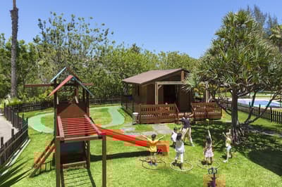 Oubliez le bâtiment massif et la déco pour mater les 18 000 m2 de jardins, le tout devant une agréable plage.