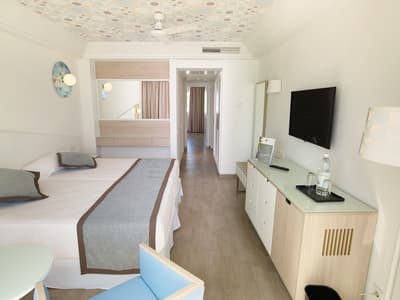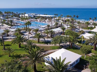 Au bord de l’océan, dans un océan de palmiers, cet impressionnant complexe de 600 chambres voit les choses en grand ! Avec 5 piscines, dont 2 pour enfants franchement originales avec l’avion toboggan et le dragon qui crache de l’eau par les narines ! Honnêtement, vous allez avoir la paix et le temps de chiller sur votre transat car vos kids vont être très, très occupés. Octroyez-vous un instant rien que pour vous avec un plongeon dans l’infinity pool qui surplombe la mer et la promenade maritime exclusivement réservée aux adultes :D ! Les chambres dans les tons sable et blancs offrent toutes une vue géniale sur cet environnement de palmiers avec l’océan Atlantique en trame de fond, ou le jardin luxuriant. On vous conseille d’opter pour les suites pour avoir droit à une piscine et une terrasse VIP ! Le top ! Et qu’on soit en all inclusive ou pas, on a vraiment un grand choix d’activités sportives et la possibilité de se mettre dans une bulle de bien-être au spa. Même si vu la grandeur du complexe, vous pourrez toujours trouver un coin tranquille pour chiller. Oh ! D’ailleurs, les bars de la piscine les pieds dans l’eau sont parfaits pour ça. Côté resto, on est sur du 100 % buffet avec quand même beaucoup de choix, dont une alternative asiatique et une autre totalement canarienne. Olé !