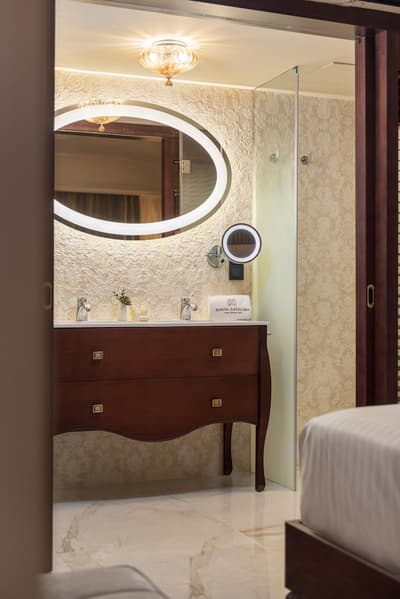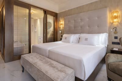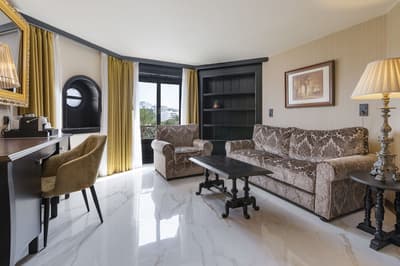 Très agréable, elle a tout le nécessaire pour un séjour confortable. Certaines des chambres deluxe disposent d'un balcon complètement aménagé pour apprécier la vue sur la ville ou sur les jardins. Fauteuil et bureau dans un coin de la chambre. Salle de bain chic.