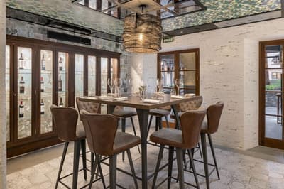 Élégante et raffinée, elle est chic ! Les meubles en bois de couleur miel lui donnent une touche d’exotisme. Les panneaux vitrés laissent pénétrer la lumière naturelle pour une pièce lumineuse. De belles lampes complètent l’ensemble.