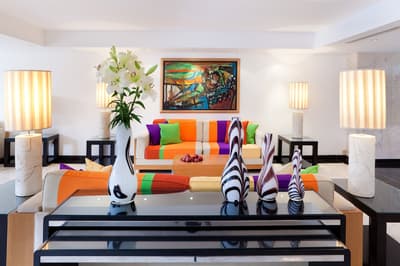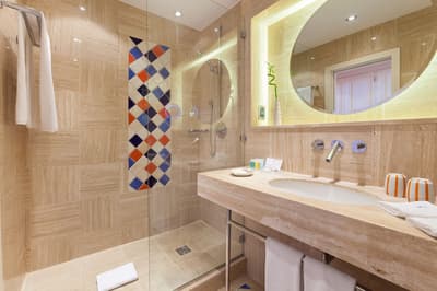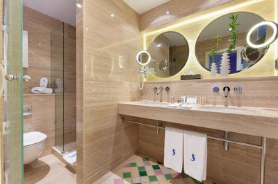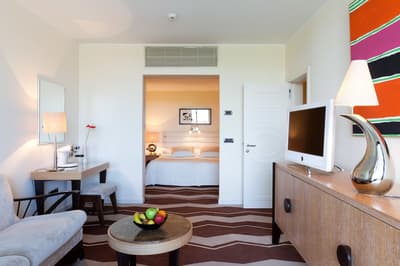 C’est l'idéal pour les couples ! Cette merveilleuse suite d’angle est installée au 7ᵉ étage du complexe. Elle profite d’une vue époustouflante sur la végétation luxuriante et sur la piscine. Elle dispose d’un lit King et de fauteuils confortables dans son coin salon. Salle de bain chic avec doubles vasques.