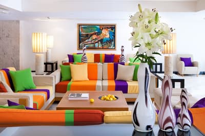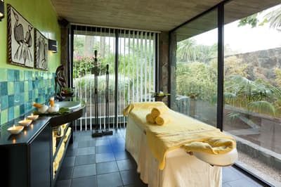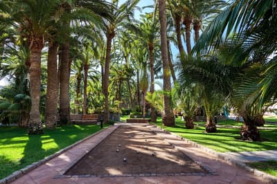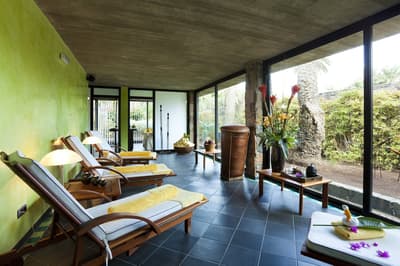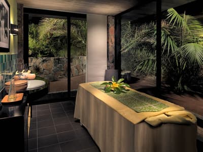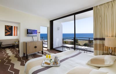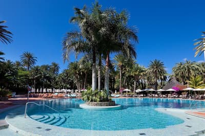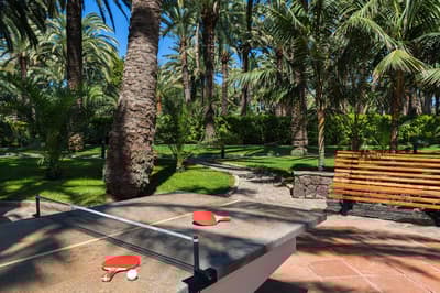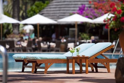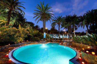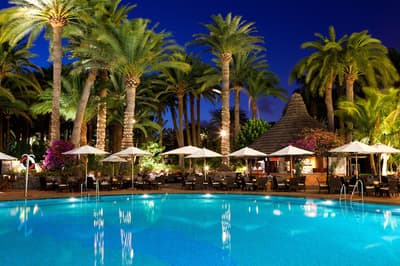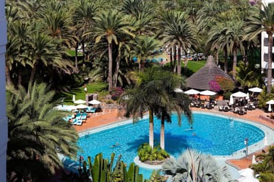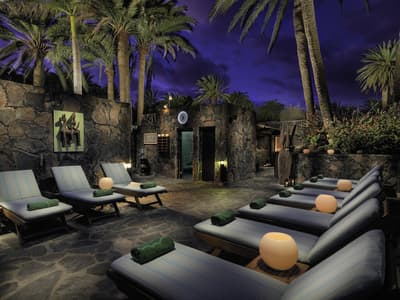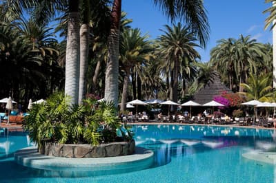 Les Canaries, oui, mais en version luxe et signée : par l’architecte d’intérieur Alberto Pinto, une célébrité en la matière ! On vous fait l’article parce qu’il est vrai que, de prime abord, le bâtiment, imposant, ne fait pas forcément envie. Mais attendez donc de voir l’intérieur... Si vous aimez les couleurs douces, les teintes pastel, fuyez ! Là, ça claque, c’est flashy et pétillant, volontairement connoté Seventies : pas étonnant que l’hôtel soit membre des Design HotelsTM ! Pour un peu, vous vous croiriez à Miami. Et cela du lobby aux bars et aux restos. Votre chambre, vous la voulez comment ? Jaune pétard et bleu des îles, purple et green flower power, corail sunset et bleu océan, ou plus sobrement beige et marron, mariage des volcans et du sable ? La déco, c’est bien. Et dans l’assiette ? Là encore, il y a du peps et du choix, que ce soit aux buffets du petit déjeuner ou aux soirées barbecue. Une envie de palourdes à la citronnelle ? L’Esencia joue sur l’essence même de la Méditerranée. Juste une envie de picorer : partagez quelques papas arrugadas à côté de la piscine. Mais laquelle ? Il y en a 5, dont 2 juste pour les adultes : après tout, les enfants ont les leurs avec toboggan ! Une envie de plage, oui, mais en flânant dans le jardin : car l’hôtel est implanté dans une très ancienne palmeraie. Demain matin, réveil tai chi en douceur, peut-être une partie de tennis avant d’affûter votre swing sur le plus vieux parcours du pays : un super prétexte pour tester le soin des pieds After Golf au spa !