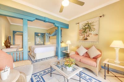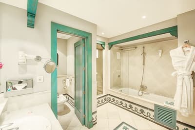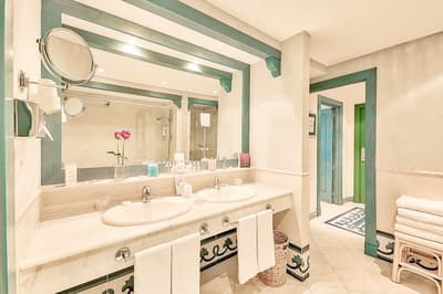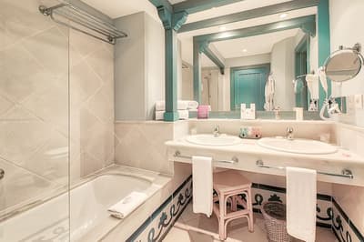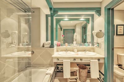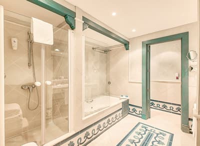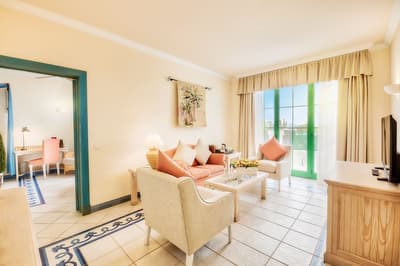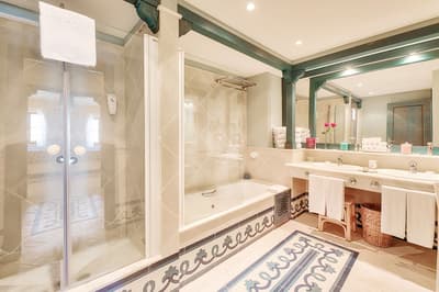 L’ensemble est dans un style de décoration élégante et moderne avec un beau carrelage, un mobilier épuré et se complète dans des tons beiges. Elle dispose d'une chambre séparée avec un lit double ou deux lits simples et d'un salon confortable pour les moments de détente. La salle de bains privée en marbre est équipée d’une baignoire d'hydromassage et d’une douche, le tout dans une ambiance reposante !