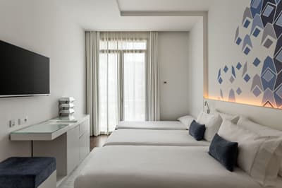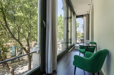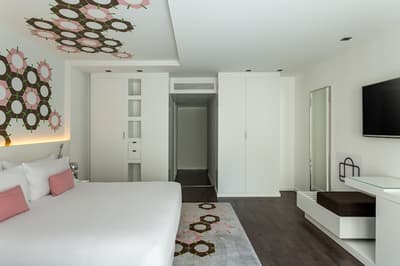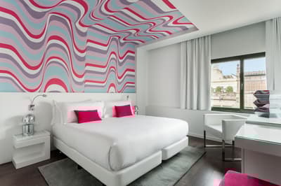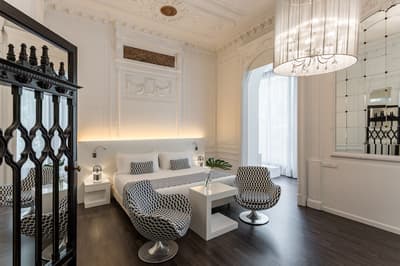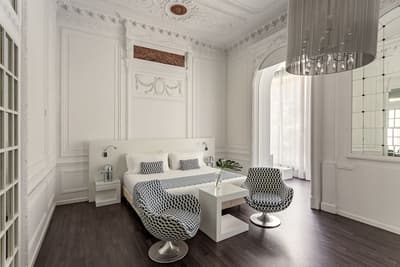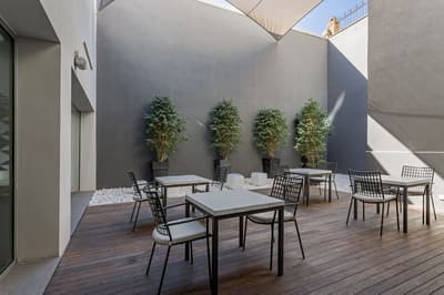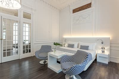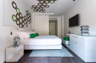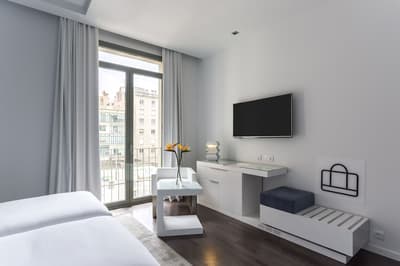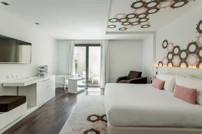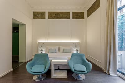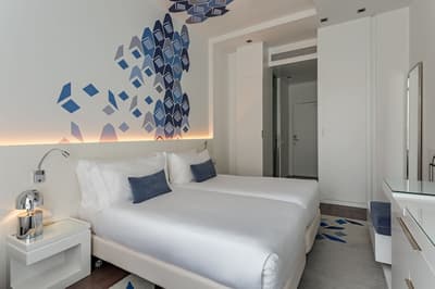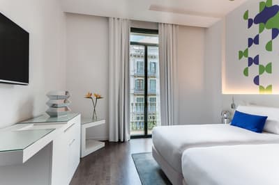 Room Mate Hôtel, c’est l’aventure d’un homme fan d’architecture, de sport et de voyage qui a fait le pari, il y a dix ans, de renouveler les codes de l’hôtel urbain. Et on kiffe le concept ! Au cœur de l’Eixample, le Room Mate Carla squatte un très bel immeuble moderniste. Son design a de quoi impressionner : le mix parfait entre le chic et le contemporain. Vous allez adorer l’esprit minimaliste des lieux, et aussi le mix de couleurs et de matériaux : bois, métal, céramique. Le designer s’est inspiré des paysages de la Méditerranée pour imaginer des intérieurs pétillants et résolument avant-gardistes. Chez Carla, vous allez vous sentir un peu comme à la maison ! Carla partagera même avec vous tous ses bons plans pour découvrir la ville like a local. Si l’établissement ne possède pas de restaurant, il propose un petit bar à cocktail idéal pour un verre, après une folle journée shopping sur le passeig de Gracia ou une journée à la plage de la Barceloneta. Côté chambre, il y en a vraiment pour tous les goûts : des petites, des grandes, avec ou sans balcon, avec terrasse. Bref, vous n’allez pas être déçus si vous décidez de poser vos valises chez Carla…