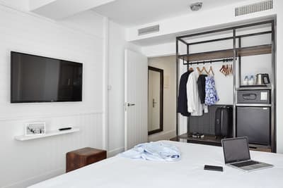 Qui a dit que Lloret del Mar est forcément synonyme d’hôtel bas de gamme ? La station balnéaire de la Costa Brava a aussi des hôtels haut standing fabuleux, la preuve avec l’hôtel Delamar. Imaginez un bâtiment moderne de 7 étages d’un blanc éclatant avec à l’intérieur de beaux espaces où bleu marine et blanc lumineux dominent – un clin d’œil à la mer, sans doute. D'ailleurs, on est à seulement 5 minutes à pied des plages. La déco ? Elle est design et épurée, la preuve avec le rooftop. Le solarium de 300 m² et la piscine qui s’y côtoient s’élèvent sur un parquet en bois clair agrémenté de belles plantes tropicales et entourés de murs blancs. Joli cadre pour taper une petite brasse ou se dorer la pilule ,non ? De là haut, on peut sentir les embruns de la mer tout en admirant le paysage urbain. Vous sentirez aussi le doux parfum de la mer depuis le balcon de votre chambre lumineuse munie d’un mobilier tendance dans l’air du temps. Testez les lits, ils sont super moelleux ! Après la sieste, rendez au rez-de-chaussée pour découvrir une cuisine méditerranéenne à base de produits locaux et issus de commerce équitable qui fait le bonheur des voyageurs (mention spéciale pour le petit déjeuner). Le succès du Delarium repose aussi sur son service premium, aussi bien du côté des restaurant que de la salle de sport ou du centre bien — à vous la pause avec soins massages et rituels spa. Sensible à l’environnement, l’hôtel Delamar veille aussi à réduire son empreinte en favorisant le recyclage des déchets et la préservation des ressources.