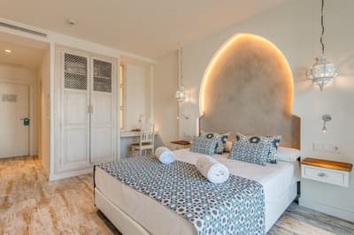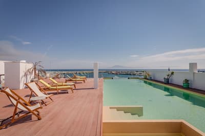 Sublime réinterprétation du style arabo-andalou, l’hôtel & spa La Residencia Puerto est juste incroyable ! On y retrouve tous les ingrédients du luxe à l’orientale : une déco soignée et colorée, un cadre intimiste à l’abri des regards, un service 4 étoiles. Il souffle sur ce petit hôtel comme un parfum d’aventure. Comme si l’Afrique, distante d’à peine 15 kilomètres, s'invitait à votre fenêtre. Les chambres sont super peaceful, un cocon duquel vous aurez du mal à vous extraire. Un design sobre, quelques touches orientales, un mobilier en bois blanc. Aucune fausse note ! La vue sur le patio de style typiquement andalou est délicieuse. Et que dire de cette piscine en rooftop, avec panorama sur l’Atlas. Le pied total ! C’est LE spot Instagrammable de l’hôtel... De quoi faire pâlir d’envie vos followers. Mais assez lézardé au solarium, direction le resto maintenant, qui vous accueille dans un cadre rétro-chic pour un dîner en salle ou dans le patio. Et à deux pas du resort vous trouverez la playa de la Isla de Tarifa, qui permet de se baigner en Méditerranée ou dans l’Atlantique. au choix.C’est pas le rêve, ça, franchement ?