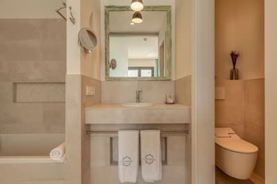 Le top ! Cette belle suite profite d’une vue merveilleuse sur l’océan. Sa terrasse est meublée d’une baignoire, de belles chaises et de transats pour apprécier le cadre relaxant et le soleil de Madrid. Elle dispose d’un salon aménagé d’un canapé-lit et d’une table à manger. Salle de bain chic avec une baignoire et une douche.