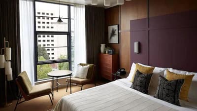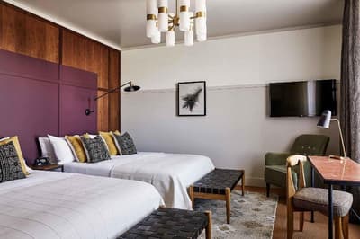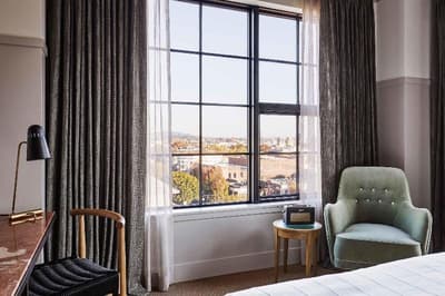 Ah, voilà le genre d’hôtel dans lequel on a envie de rentrer quand on passe devant par hasard, à la tombée de la nuit, en se baladant à la sortie du restaurant. Vous voyez un peu ? Ceux avec une lumière tamisée, des touches de bois sombres aux murs et des bouteilles d’alcool onéreux disposées sur des étagères en verre derrière le bar. Dès le panneau extérieur, vous comprendrez très bien à quel type d’endroit vous avez affaire. Cette sorte de chic urbain classique qui donne le ton du séjour dès le premier regard, ou presque. Ici, pas question de design hurluberlu et d’art contemporain incompréhensible qui en fait des caisses. Au contraire, un charme inné se dégage de chaque centimètre carré. Tout est construit autour du lobby, où tout le monde se rejoint pour boire un thé matcha, manger un avocado toast ou juste feuilleter le New York Times. Murs de briques, carreaux brillants, plantes par dizaines et surtout canapés cosy avec plein de coussins comme dans les téléfilms diffusés sur TF1 le lundi après-midi, le décor est planté. Sans oublier des touches de design pointu, des lustres aux tables. Au cœur de la ville qui a donné naissance à certains des meilleurs musiciens du monde, vous pourrez marcher sur les traces d’Elliott Smith et Chromatics. Et si vous ne les connaissez pas, c’est très grave mais il est encore temps de changer ça !