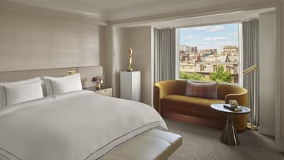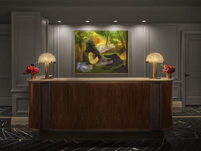 Mais... Courbet ? Iciiii ? Au-dessus du comptoir ultra-chic du Newbury, entre d'élégantes moulures en bois, un hommage à l'artiste français vous fait de l'œil. Œuvre de l'Américaine Elise Ansel (prenez des notes), il s'inscrit dans une super collec' d'art contemporain, répandue dans tout l'hôtel. Ici, la modernité joue avec le passé, derrière une façade historique, briquettes rouges et pierres blanches, dans des murs qui reçurent leurs premiers hôtes en 1927. Depuis le rooftop vitré qui abrite le resto signature (un bijou inspiré des plus belles villas italiennes et l'une des meilleures tables de la ville), vous pouvez shooter d'autres tableaux : les toits de Back Bay et le Boston Public Garden. C'est que le Newbury est super bien placé ! Au centre de tout et à l'angle de la très populaire Newbury Street, avec ses boutiques et ses restos côtés. Si vous en avez les moyens, bookez un private tour avec un des guides de l'hôtel : le top pour partir à la pêche aux photos et en apprendre un max sur Boston. À moins d'aller chuchoter à la Library du Newbury, entre les sculptures de Breon Dunigan et l'art textile de Richard Saja (ressortez vos notes), une bibliothèque où vous pouvez aussi boire et manger. Et ça, avouez, c'est la décadence comme vous l'avez toujours rêvée...